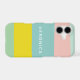Cute, bright and colourful! This simple pattern features colour blocked shapes in a trendy palette of candy pastels including mint green, aqua, pink, and yellow. Personalise it with your name. Great gift idea.