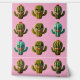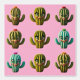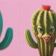 Small, adorable cacti, each in a unique pot. With unusual, bright colours: some have delicate mint green hues, while others sport a soft sky blue. Some have little flowers on the top, like wreaths of sunshine yellow or bright pink, have rounded shapes and a cosy, friendly appearance.