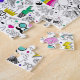 So much fun in one print! This pattern is a black and white cartoon sketch with colourful touches throughout. Features pieces like rainbow clouds, flamingos, doughnuts, cupcakes and ice cream, 80s icons, skateboards, anchors, sneakers, cacti, moustaches, cameras and SO MUCH MORE!!! Great for an 80s party, or just a tonne of every day fun.