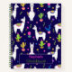 Cute Colourful Alpaca Cactus Custom Name Dark Blue Notebook