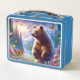 Cute, colourful bear & butterflies metal lunch box