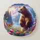 Cute, colourful bear & butterflies round cushion