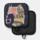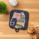 Cute Colourful Cosy Cat in Snowfall Oven Mitt Pot Holder