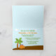 This boy's birthday party folded card invite has a cute colourful dinosaur design. There is a volcano on the bottom right with three dinosaurs standing in front of it, with a yellow one flying. On the inside, there is a dinosaur standing in front of a tree. You can easily customise your party information on the inside. Graphics by Stockberry Studio at Mygrafico