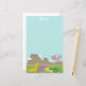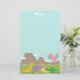 A cute and colourful dinosaur stationery for children! It comes with cartoon dinosaurs, a yellow Brachiosaurus, a purple Triceratops, a green Stegosaurus and a pink Pterodactylus. Background of mountains and clouds. This attractive design is great for kids who love Jurassic, prehistoric or dinosaur themes. Text reads "Note".