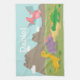 A cute and colourful dinosaur kitchen towel. It comes with cartoon dinosaurs, a yellow Brachiosaurus, a purple Triceratops, a green Stegosaurus and a pink Pterodactylus. Background of mountains and clouds. This attractive design is great for kids who love Jurassic, prehistoric or dinosaur themes. Add the child's name to make it extra special.