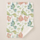 A watercolor drawing of several cute colourful dinosaurs in pink, green and blue colours.