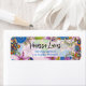 Bright hues of blue, pink, yellow, green, and purple dominate the label, creating an eye-catching effect. The sender’s name is prominently displayed in an elegant black script font, providing a beautiful contrast to the colourful backdrop. Below the name is the address written in smaller but still readable blue text.