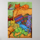Cute Colourful Drawing Cats Chair Napping Sleeping Poster