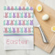 This cute Easter kitchen towel features rows of cute bunny rabbits in spring shades of pink, aqua and lavender. Personalise with your choice of special text.