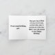 This card is great fun and good quality. I loved the humour inside and on the back. There is the opportunity to change the orientation of this card from landscape to portrait, which I did. It is relatively straightforward to amend the typeface to fit the new orientation. It was well packaged with no plastic. The printing on this card is excellent.
