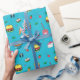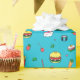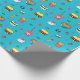 Cute Colourful Food Pattern on Blue Wrapping Paper
