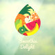 Colourful fruit logo illustration. Pineapple, watermelon, banana, pear, apple, orange, kiwi and strawberry in a healthy drop. Perfect for juice or smoothie business.
