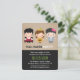 Invite kids over for a Halloween dressed up party! Start off with this cute and colourful Halloween party invitation! The illustration has kids dressed in fun costumes which include the boy in a little vampire outfit with black cape and red vest, girl in jack o lantern pumpkin inspired dressed complete with a little pumpkin hat, boy in zombie look with eye shadows, blue plaid shirt, v neck tee, grey pants and brains decoration on his hair. An invite that is going to get the children guests excited for the spooky fiesta! Grungy texture background and black jagged space for party personalisation.