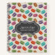 Personalised notebook with your name and subject / title. Designed with a cute pattern of macarons in many different colours with a faint polka dot pattern behind.