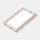 Sticky notes with a cute pattern of macarons in many different colours with a faint polka dot pattern behind. A white rectangle layered over top to write inside.