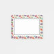 Sticky notes with a cute pattern of macarons in many different colours with a faint polka dot pattern behind. A white rectangle layered over top to write inside.