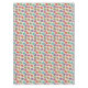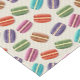 A tablecloth with a cute pattern of macarons in many different colours with a faint polka dot pattern behind.