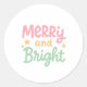 Modern Christmas stickers featuring a cute and fun design with "Merry and Bright" in cheerful pastel pink and green casual lettering.