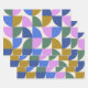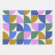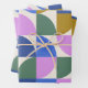 This stylish wrapping paper features a modern geometric pattern of shapes in green, violet pink, goldenrod, and blue.