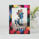 This modern holiday photo card features a colourful bokeh (blurred holiday lights) background with the greeting "JOYFUL" in white on the front. On the back you will find the same bokeh background (which can be removed if desired). Further customise this design by adding a photo and/or text to the back!