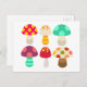 Cute colourful mushrooms postcard