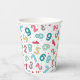 NewParkLane - Cute Kids Birthday Paper Cups, featuring a whimsical pattern of little colourful numbers against a white background.