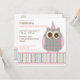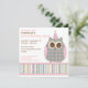 A cute little owl holding a trio of pastel balloons invites your guests in playful style!