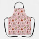 Cute, retro christmas apron featuring christmas ball ornaments, gifts, flowers, disco ball, mistletoe cup, candycane, santas bag, ribbons and hearts.