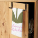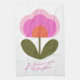 This bright and cheerful kitchen dish towel features a cute retro Scandinavian flower illustration in pink. Personalise it with your name - either with or without adding the word kitchen. Great gift idea!