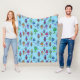 Cute colourful robots on blue background fleece blanket