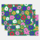 Cute Colourful Scandinavian Flower Pattern in Gree Wrapping Paper Sheet