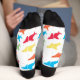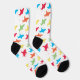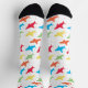 Cute shark socks with a pattern of colourful sharks on a white background. Simply add these socks to your cart, get them home, and then enjoy them wherever your feet may go.