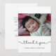 Modern and simple baby shower thank you card. Fully customisable with your baby's picture, name and other details. Editable colours and background.