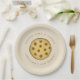This design features a birthday cookie favour treat, wedding minimalist cute cookie, wedding minimalist cute treat, whimsical fun typography round, chocolate chip cookie dessert, wedding reception grooms dinner buffet, rehearsal dinner engagement party, elegant simple classic design, wedding party paper plate, wedding party supplies, homemade sweet treat snack baking, artwork by laura lacina