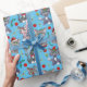 Cute Cool Christmas Cat In Blue Wrapping Paper