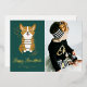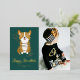 Happy Hanukkah! Send your festive greetings with this customisable gold foil Hanukkah photo flat card. It features an adorable corgi wrapped in string lights. Personalise by adding a photo, names, year and other details. This cute corgi photo Hanukkah flat card is available in other foil colours.
