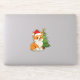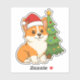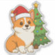 Cute Corgi Dog in a Red Hat with Christmas Tree