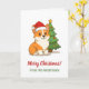 Cute Corgi Dog in a Red Hat with Christmas Tree Card