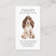Whimsical unique dog walker pet sitter watercolor dog business card with a description of fun things to do with dogs.