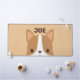 This design features cute little corgi dog cartoon illustration with personalised name in brown modern sans serif font style on light brown background.