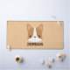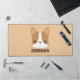 This design features cute little corgi dog cartoon illustration with personalised name in brown modern sans serif font style on light brown background.
