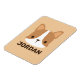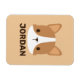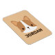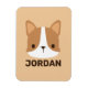 This design features cute little corgi dog with personalised name in brown modern sans serif font style on light brown background.