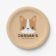 Cute Corgi Dog with Personalised Name Paper Plate