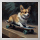 cute corgi riding skateboard poster