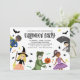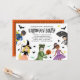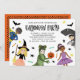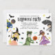 This super fun Halloween party invitation features 5 hand drawn kids in costumes (a superhero, witch, dinosaur, ballerina princess, and shark). Other little accents include bats, stars, candy, spiders, and a little jack-o-lantern. The back of the card contains a dots pattern over an orange background. For custom design or product requests, please contact me (Tracey) at orabellaprints@outlook.com.