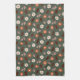 Cute cosy pattern with flowers mushroom & pinecone tea towel