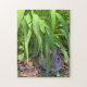 A cute cottontail rabbit sits under the leaves of a tiger lily on a sunny spring day. Makes for a challenging puzzle.