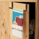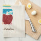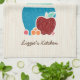 Add a touch of hominess to your kitchen with this cute country style kitchen towel featuring a hand drawn style set of wooden spoons and kitchen utensils in a turquoise pot surrounded by a delicious red apple and fresh fruit. This country kitchen themed design on a light wood pattern background can be personalised by adding your name.