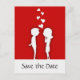 Silhouette Couple with Hearts Save the Date Wedding Announcement Postcard in Red, White and Black.